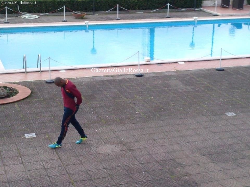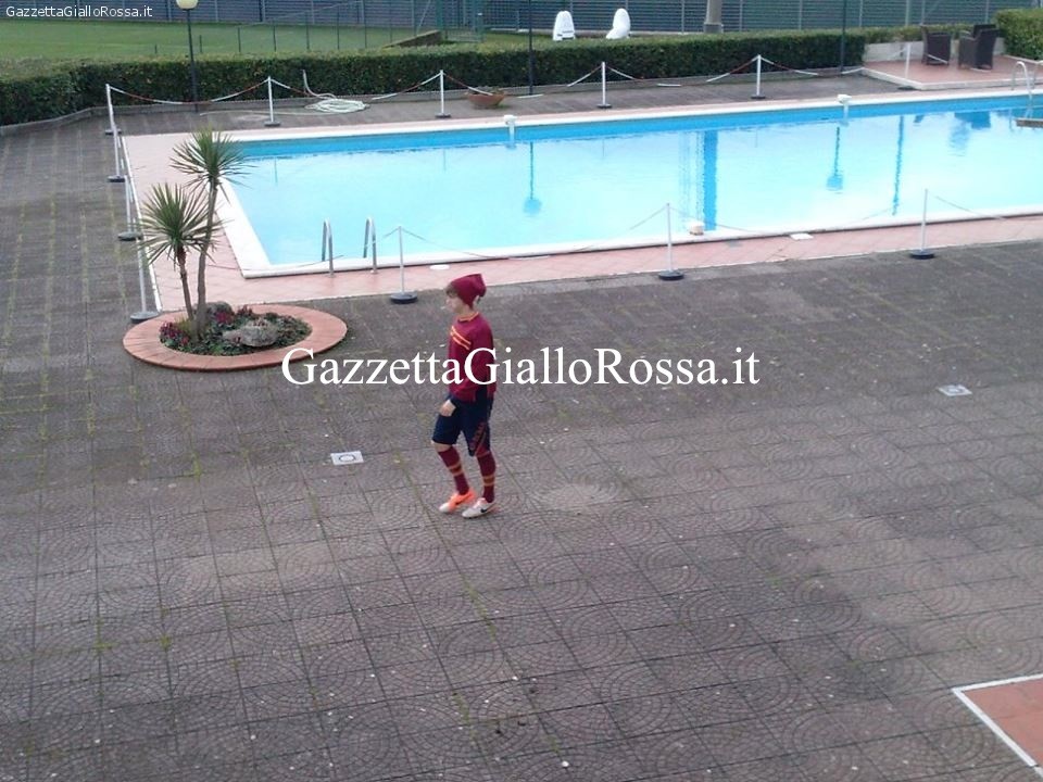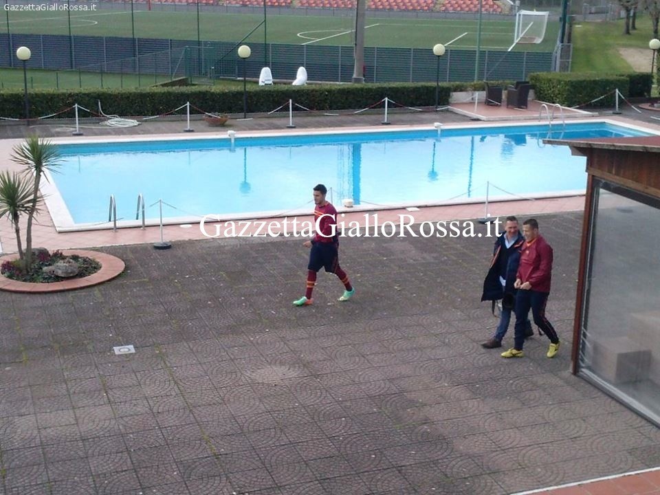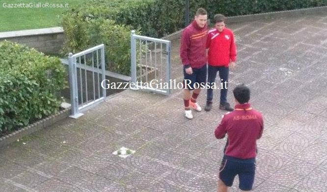 Ore 16:07 Prima di lasciare il campo Burdisso scatta delle foto a suo nipote con Totti e Strootman.
