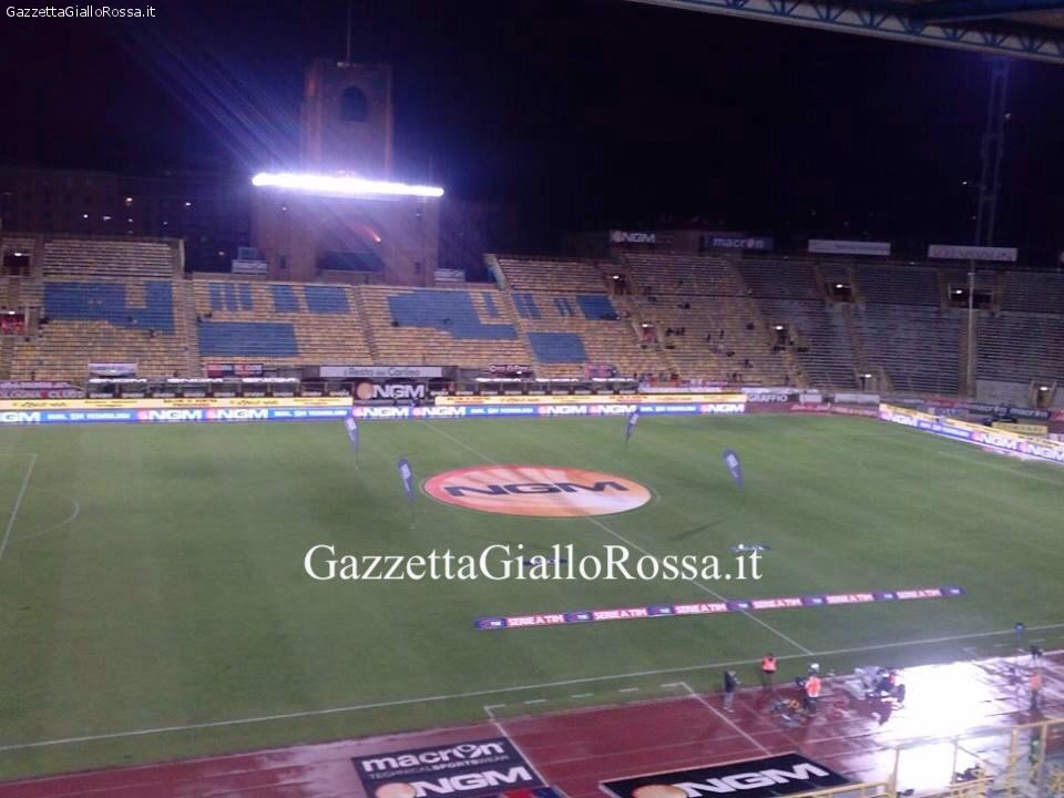 Ore 19:55 Scende in campo il Bologna per il riscaldamento pre-gara. Intanto i 2.500 tifosi giallorossi hanno preso posto nello spicchio dello stadio Dall’Ara riservato agli ospiti.