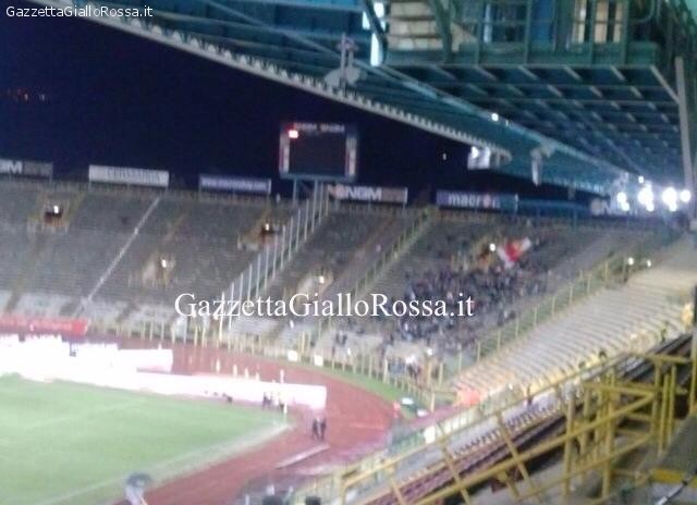 In attesa del riscaldamento delle squadre hanno già fatto ingresso allo stadio Dall’Ara i primi 300 tifosi giallorossi provenienti dalla capitale. Visto il traffico serrato al casello di Bologna, il resto degli oltre 2.500 tifosi attesi complessivamente nel capoluogo felsineo, entreranno fra qualche minuto.