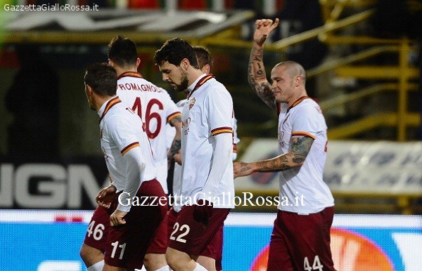 Ma la Roma è bella perché non è mai banale, non si sa come ma riesce a portarti a un’emozione pure quando pensi che ormai da quel punto di vista – anche per evidenti meriti sul campo – sei prossimo alla pensione. Esodati dell’anima. Popolo fantastico che continua a viaggiare appena può e a riempire di carne, sentimento e senso il settore. È lì sotto che è finita pure ieri (pure la palla di Christodoulopoulos? È fuori?) con Gervinho che si spoglia per primo perché lui è attratto dalla libertà e in quello spicchio di stadio là quella si respira, quella ci sta. Nudissimo alla meta. Poi arriva De Rossi che ancora si sta chiedendo una cosa (ma è finito fuori quel pallone?) che fa tre cose: prima porta la squadra là sotto, poi si va ad abbracciare forte forte, con rispetto e sincero senso di squadra e di spogliatoio Taddei, e infine va a prendersi sottobraccio Romagnoli, il ragazzino, sorridendo e uscendo dal campo con lui. Nel nome del padre, del figlio e dello spirito santissimo del pallone di Christodoulopoulos che aleggiava proprio da quelle parti.