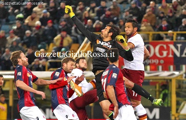 (G. Caccamo) – Meritata ma sofferta la vittoria giallorossa sul Bologna, vittoria che metterà pressione di sicuro alla Juve chiamata a mantenere le distanze provando a vincere il derby. L’emergenza terzini Garcia la risolve pescando tra le seconde linee seguendo logiche che privilegiano esperienza e conoscenza della struttura di gioco giallorossa; solito inizio sotto controllo della Roma che pur rischiando qualcosina sugli esterni nelle ripartenze rosso-blu, riesce a farsi pericolosissima nelle azioni manovrate ai limiti dell’area di rigore felsinea. Migliora col passare dei minuti la confidenza di Taddei e Romagnoli con il loro ruolo e ne risente positivamente la pressione giallorossa alla porta di Curci; le strettissime linee difensive del Bologna non consentono comunque alla Roma di velocizzare il gioco e di renderne imprevedibili gli attacchi: appena riesce a produrne uno crea immediatamente le condizioni per battere a rete con successo.