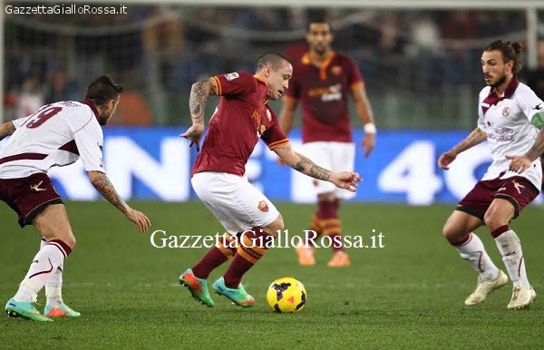 (S.Carina) – Nel pomeriggio la Roma ha ripreso la preparazione in vista dell”impegno casalingo di domenica sera all”Olimpico contro la Sampdoria. Solito lavoro di scarico per chi ha giocato ieri in coppa Italia, tecnico-tattico per chi non è sceso in campo. Nel posticipo contro la squadra di Mihailovic, dovrebbero tornare dal primo minuto sia Nainggolan (squalificato col Napoli) che Totti. Il capitano giallorosso, in un”intervista a Sky rilasciata nei giorni scorsi durante un”iniziativa pubblicitaria del suo sponsor tecnico (Nike), è tornato sulla scelta di vita di restare a Roma: «Sono fiero di aver giocato sempre nella stessa squadra. Vincere qui è sempre più difficile. Il mio idolo era Giannini. Studiavo ogni movimento e la sua posizione in campo, poi giocava a testa alta. Soddisfazioni? Sicuramente il mondiale e lo scudetto, mentre il momento più difficile è stato dopo l”infortunio alla caviglia (febbraio 2006, ndc): rischiavo di smettere e invece sono tornato come prima». Intanto il murales che lo raffigura sulla facciata della scuola Pascoli, nel quartiere San Giovanni, nella notte è stato già imbrattato con delle secchiate di vernice da alcuni vandali.