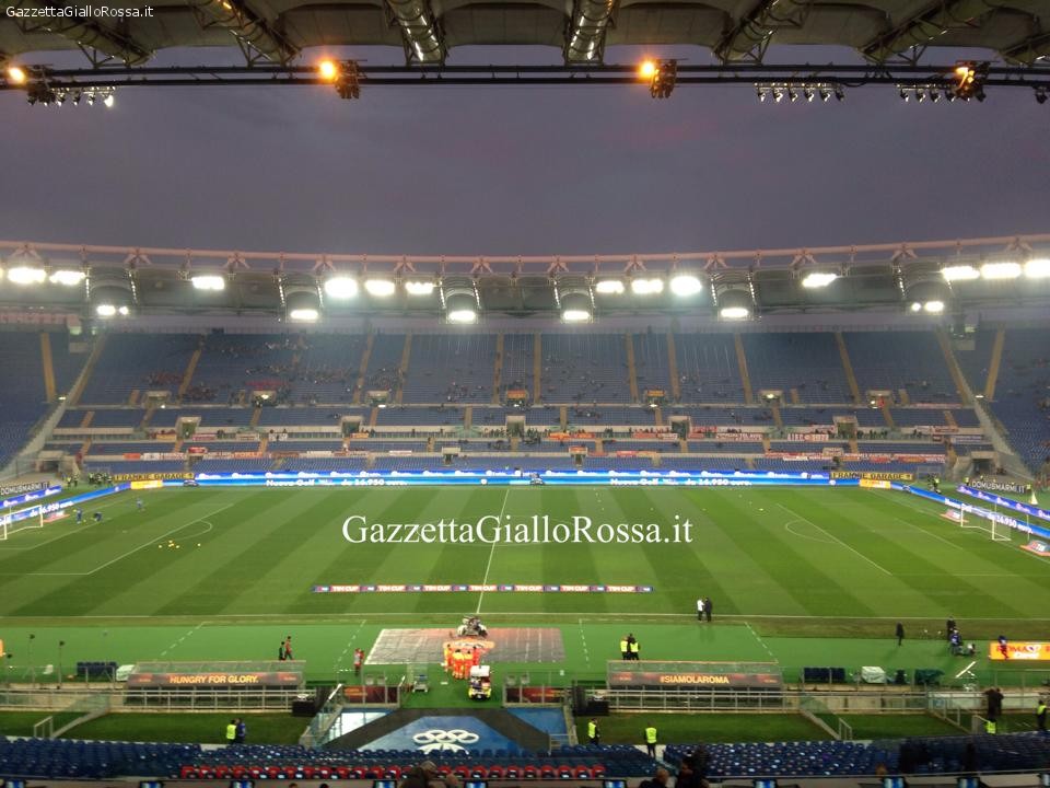 Giovanni  Caselli, agronomo della Lega calcio assicura a poche ore da Roma-Napoli che non ci saranno problemi per lo svolgimento della semifinale di andata: “Il terreno dell’Olimpico giace sotto una coperta completa di teli. Quindi, al momento, è preservato da qualsiasi tipo di guaio, almeno da qui a stasera. Ieri – aggiunge – hanno sforellato tutto il campo di buchini di 8 millimetri e, quando si toglieranno i teli, questi buchi andrebbero ad agevolare ove mai ci fosse un flusso maggiore d’acqua”.