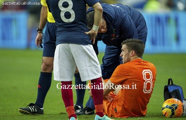 (A.Austini) A Napoli per giocarsi il secondo posto senza Totti e De Rossi. Questo Garcia l’aveva messo in preventivo, ma ora rischia di perdere anche Strootman.L’olandese si è infortunato ieri sera durante la sfida con la Francia: un colpo di Valbuena all’altezza del collaterale del ginocchio destro, lo stesso che lo faceva già patire per un’altra botta presa a Verona, ha costretto il romanista a uscire prima dell’intervallo. Strootman è rimasto in campo per altri cinque minuti dopo il fallo subìto ma il dolore non è scomparso e ha chiesto il cambio. È uscito sulle sue gambe, zoppicando vistosamente e al rientro negli spogliatoi ha trovato sul cellulare le chiamate dei medici della Roma già in allerta. Le prime risposte sembrano confortanti: l’olandese ha spiegato di avvertire un fastidio dietro al ginocchio ma è convinto che non si tratti di nulla di grave. Oggi al rientro a Trigoria gli esami chiariranno il quadro: è quantomeno a rischio per Napoli.