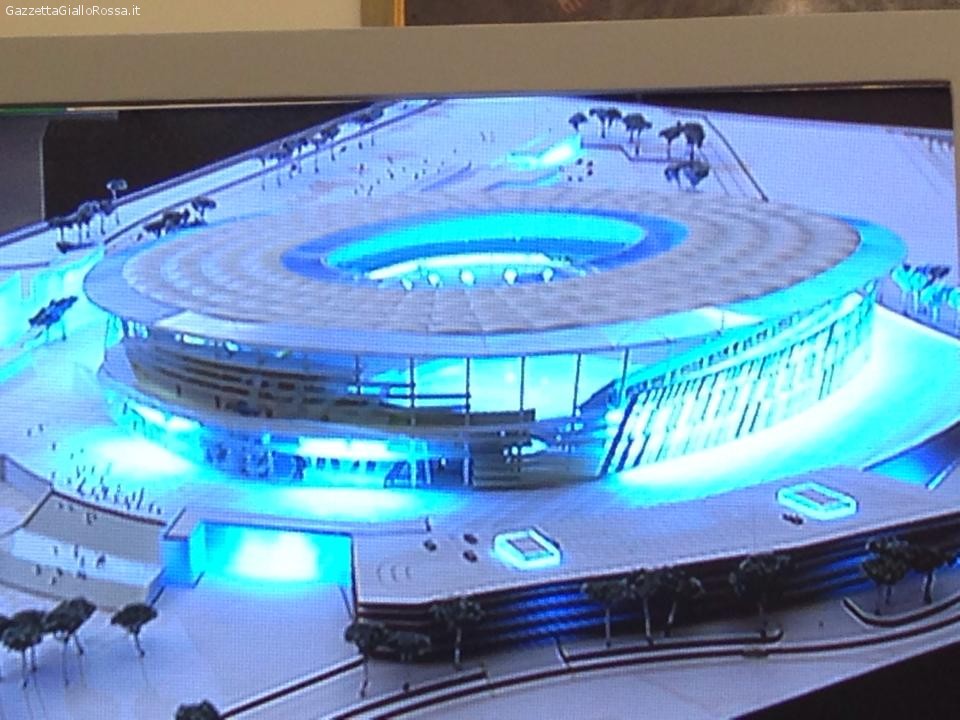 Presentato pochi minuti fa il nuovo stadio della Roma, che nelle intenzioni di tutti sarà pronto dalla stagione 2016-2017. Come era trapelato alla vigilia, la nuova arena dei giallorossi ha i tratti dell‘Olympiastadion di Berlino. Eccezionale saranno tecnologia e design intero: nella progettazione dello stadio, Dan Meis – che ha vissuto un’esperienza in Curva Sud -, ha pensato di disegnare delle tribune verticali, molto vicine al campo, che incutano terrore all’avversario. In particolare il cuore pulsante della tifoseria avrà a disposizione un settore a sé: 14.000 posti. ECCO TUTTE LE FOTO DEL NUOVO STADIO!