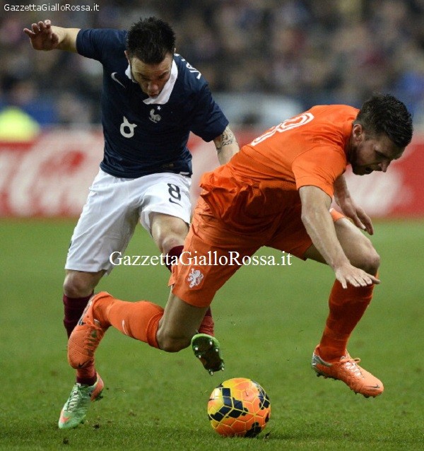 OLANDA Strootman esce al 39′ dopo un brutto fallo di Valbuena (FOTO) Archivio PRIMO PIANO by - 5 Marzo 2014 Strootman Il centrocampista giallorosso Kevin Strootman ha abbandonato il campo al 39′ di gioco a causa di un brutto fallo di Valbuena. Messo k.o. dal giocatore francese Strootman è stato constretto ad abbandonare il campo. Valbuena colpisce Strootman .