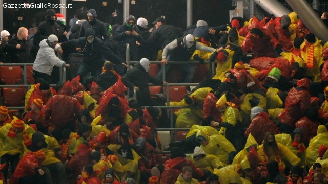 Di li a poco sono andati in scena scontri violentissimi: i tifosi del Legia hanno letteralmente schiacciato gli ospiti a suon di calci e pugni contro le barriere posizionate sull’altra estremità. Dopo parecchi minuti, il tardivo intervento della polizia polacca – il cui operato è ancora al centro di polemiche, per quanto accaduto qualche mese fa durante la partita di Europa League tra i padroni di casa del Legia e la Lazio, con oltre 200 tifosi laziali praticamente sequestrati in piazza, arrestati e trattenuti per molti giorni senza apparente motivo – ha ricacciato gli ultras del Legia nel proprio settore ripristinando la sicurezza all’interno dell’impianto.