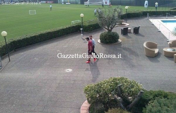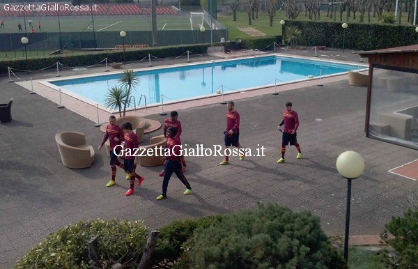 Ore 15.40 La partitella termina 1-0 per i Gialli, gol di Florenzi. La squadra è divisa ora in due gruppi: gli attaccanti provano i tiri, il resto del gruppo si concentra sui calci piazzati che vengono battuti a turno da Maicon, Bastos e Taddei.