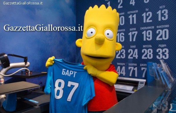Lo Zenit San Pietroburgo annuncia… Bart Simpson. Il personaggio nato dalla matita di Matt Groening sarà, infatti, la nuova mascotte del club russo. La presentazione è avvenuta davanti ad un divertito André Villas Boas. Per Bartolomeo Jo Jo Simpson è già pronta la maglia numero 87, anno in cui fece per la prima volta comparsa sugli schermi televisivi.Bart ha superato le visite mediche e si è già allenato con i nuovi compagni.
