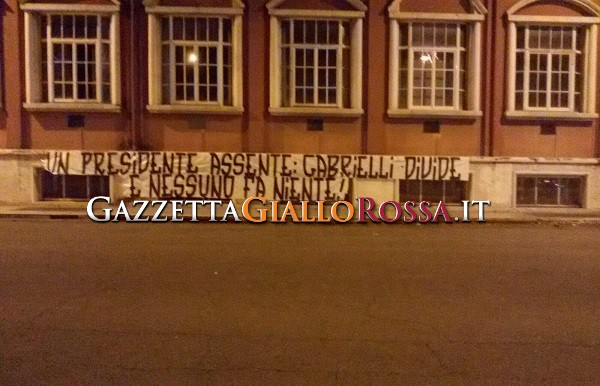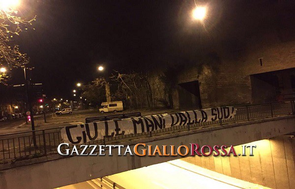 In nottata alcuni tifosi giallorossi hanno esposto degli striscioni in diverse zone della città per ribadire la loro posizione circa le barriere divisorie presenti in Curva Sud