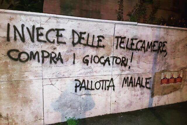 Molti tifosi della Roma non hanno preso positivamente le uscite, un po’ troppo infelici, del presidente James Pallotta che nei giorni scorsi ha parlato anche della poca civiltà delle tifoserie del centro-sud Italia. Ecco dunque spuntare in città alcune scritte non proprio a favore della presa di posizione del tycoon americano.