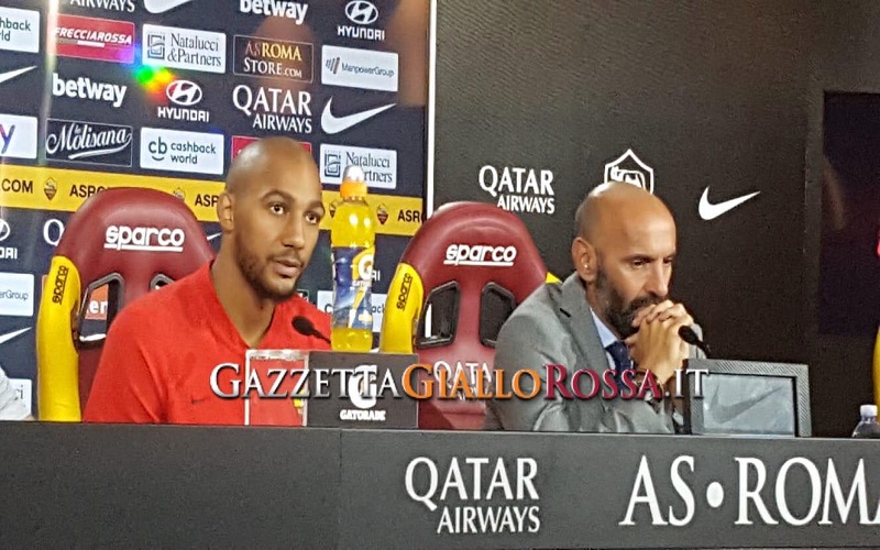 Giornata di presentazione per Steven Nzonzi. Il centrocampista francesce, accompagnato dal ds giallorosso Monchi, ha risposto alle domande dei giornalisti presenti nella sala stampa di Trigoria. Queste le loro dichiarazioni: